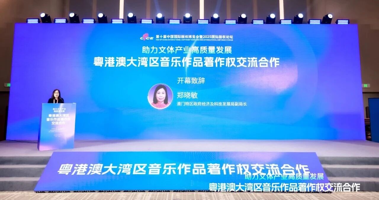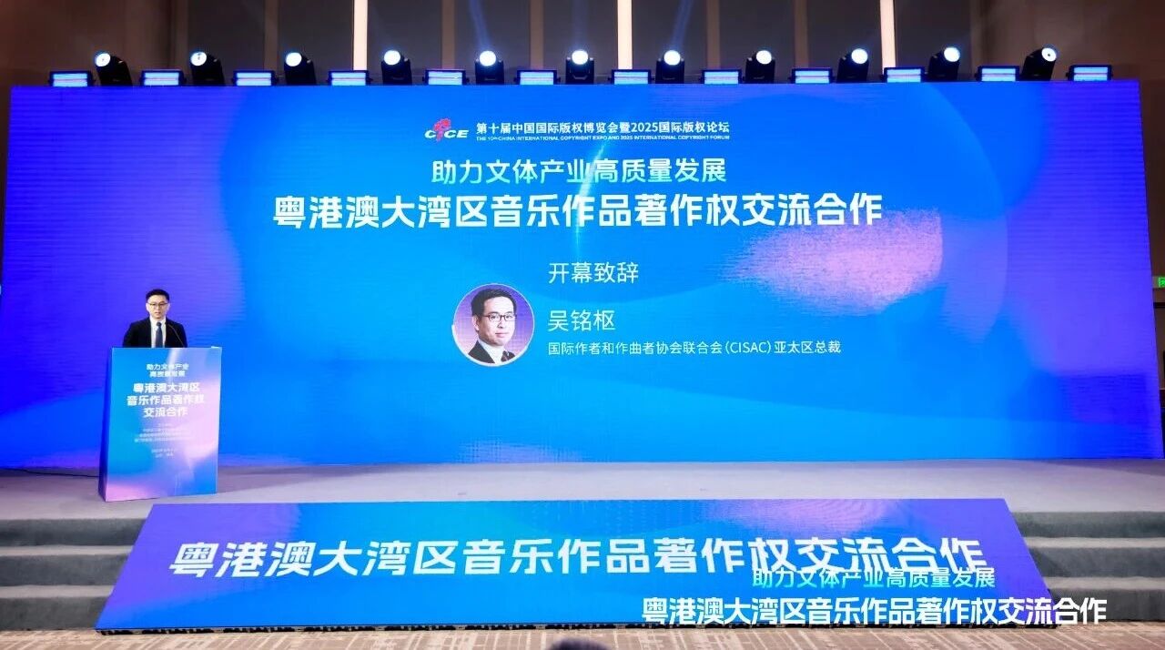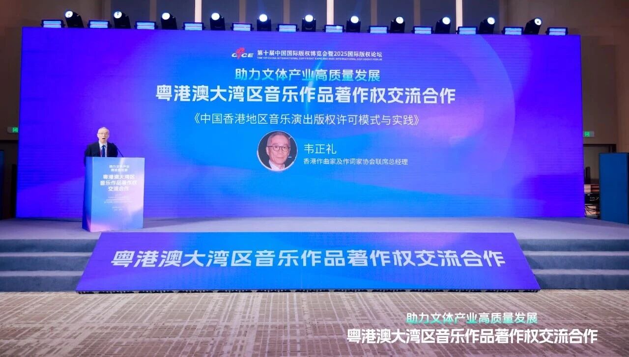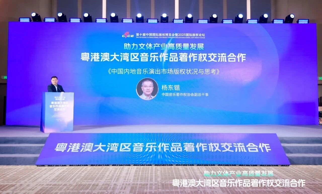 2025年10月17日,深圳市版权协会常务副会长陈彦受中国音乐著作权协会邀请,赴青岛参加了两年一届的中国国际版权博览会。在【助力文体产业高质量发展——粤港澳大湾区音乐作品著作权交流合作】会议上,陈彦副会长以《从维权案例看音乐演出市场的版权治理》为主题发表了精彩的演讲。